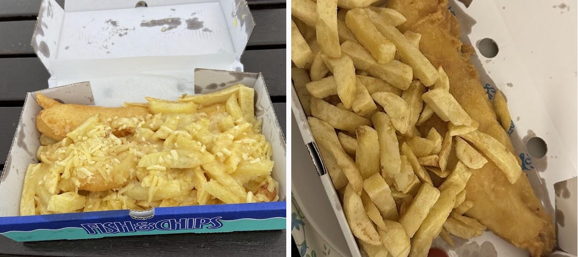 You simply cannot miss the classic cod and haddock fish and chips, which come in fresh, perfectly crispy batter. The mushy peas add a lovely touch, and for something indulgent, try the cheesy chips or a hearty pie.